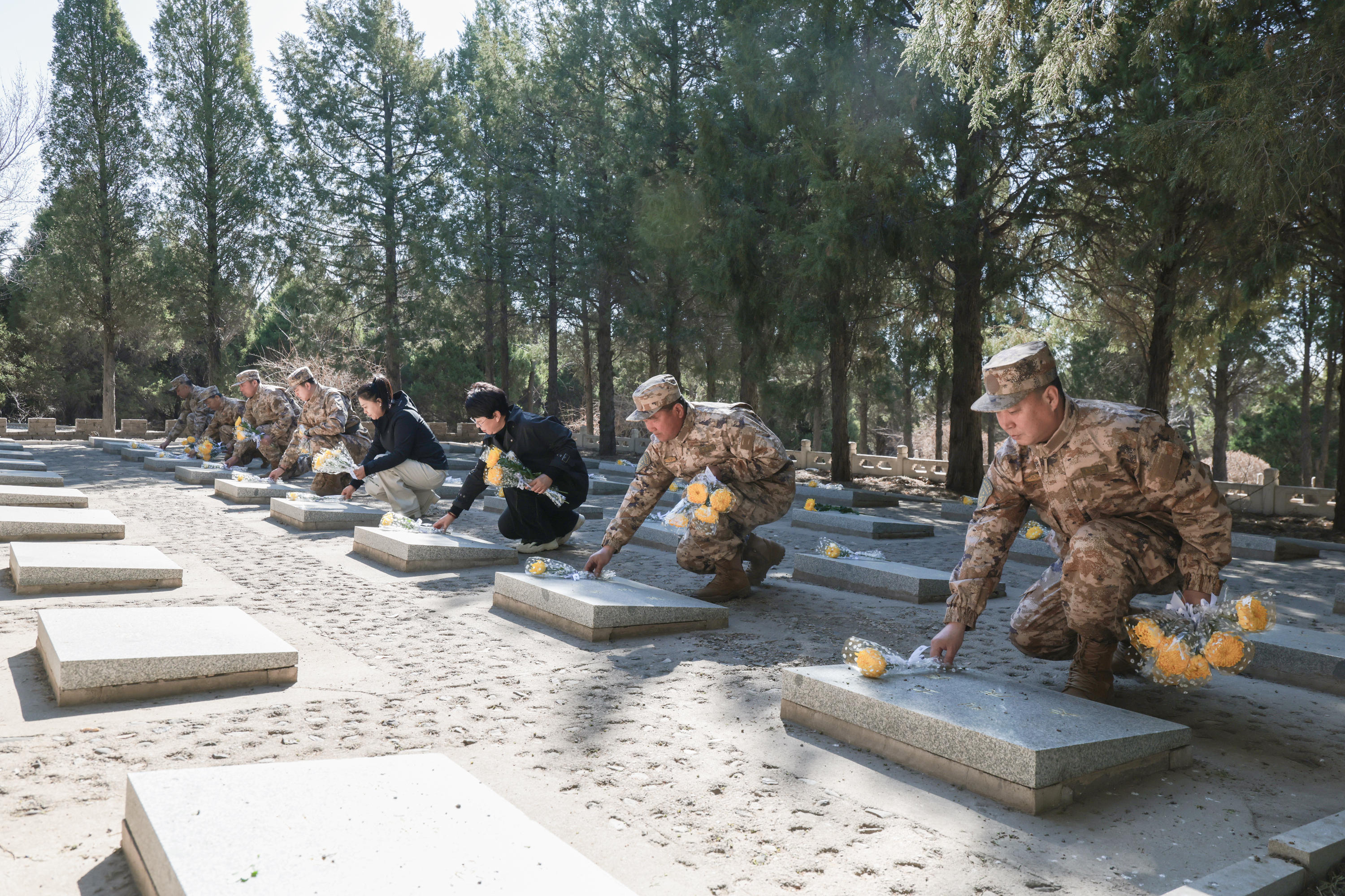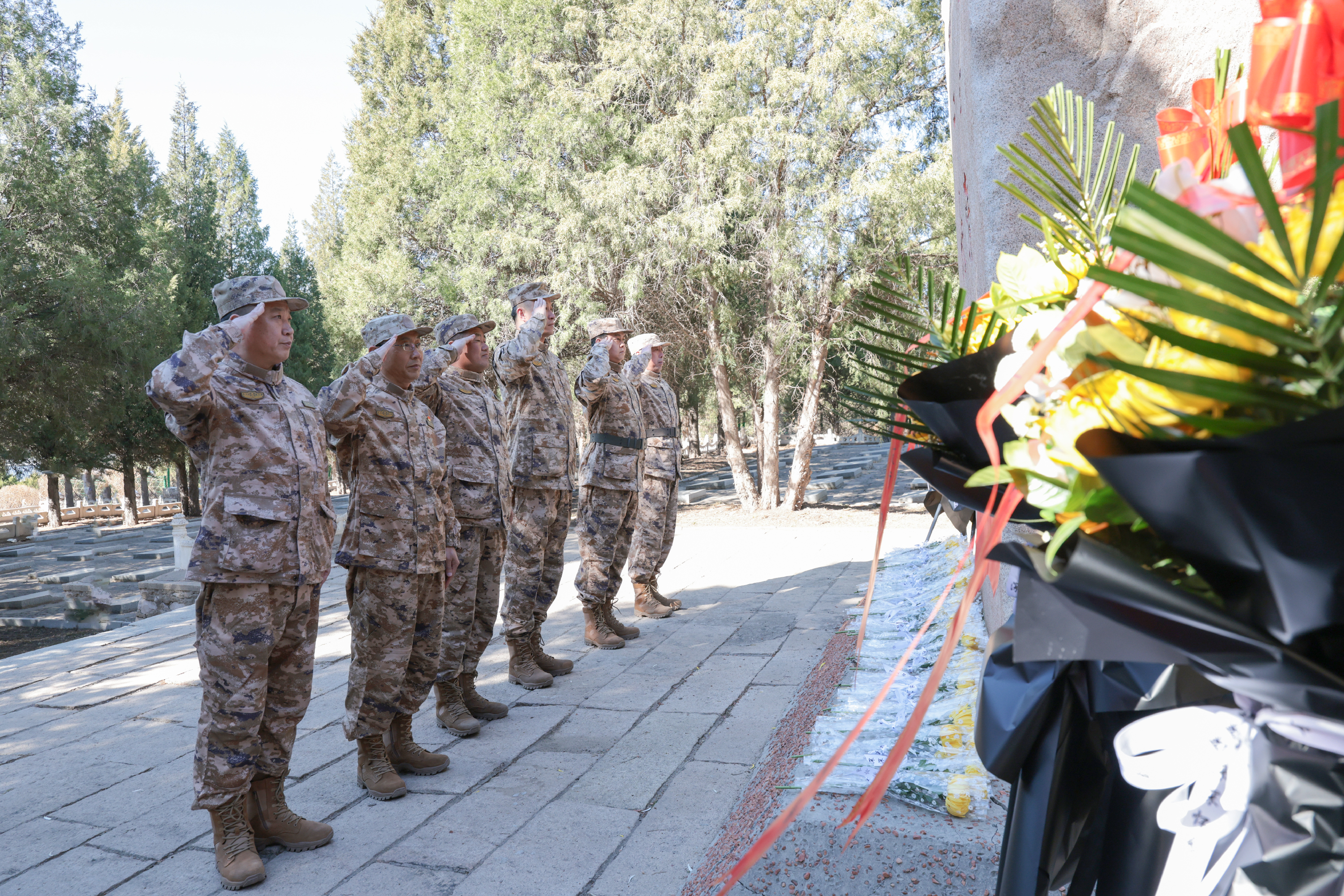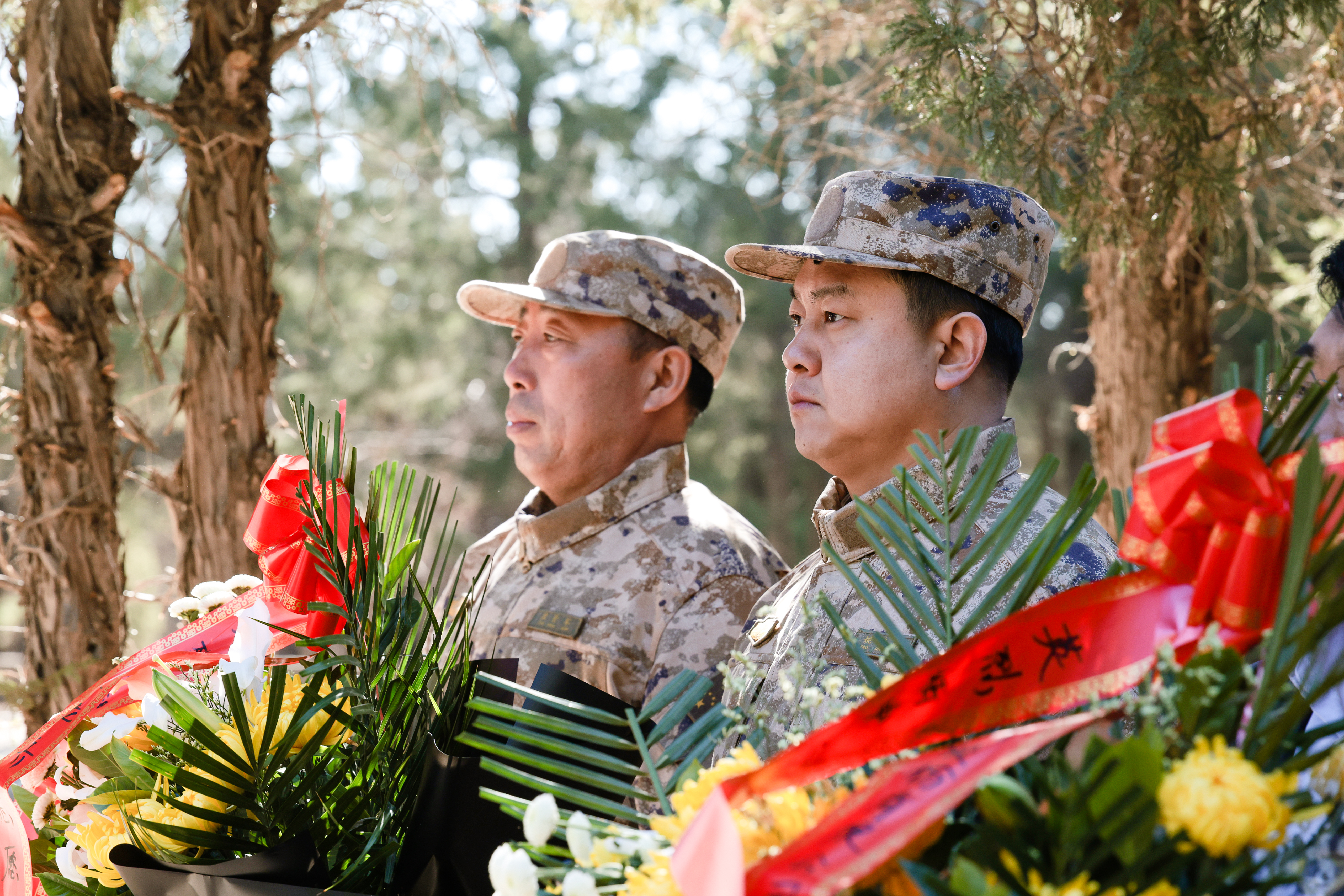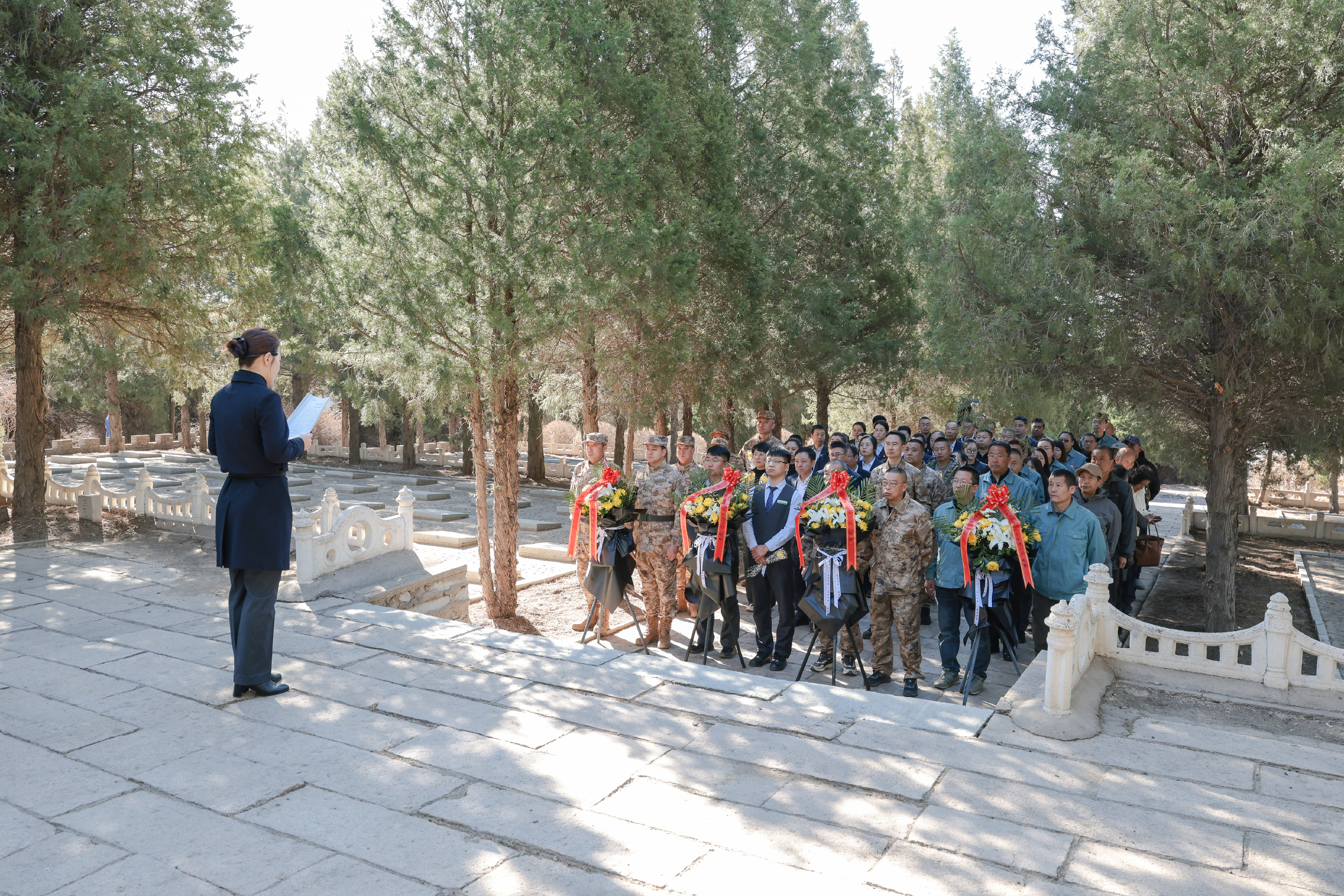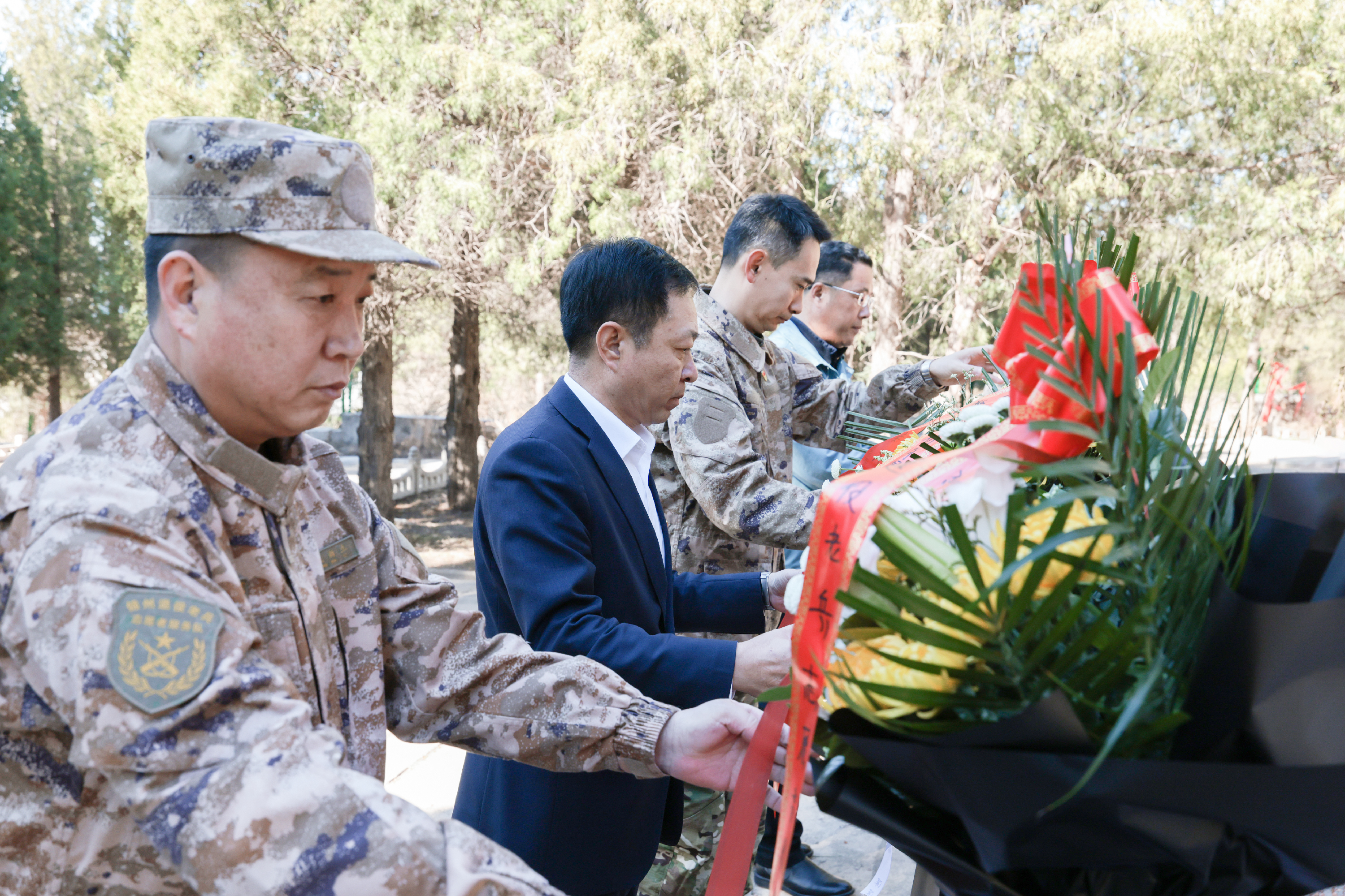 在庄严肃穆的氛围中,各单位代表缓步上前,向革命英烈敬献花篮,仔细整理花篮缎带,表达对先烈的崇高敬意。随后,全体参与人员低头肃立,默哀三分钟,深切悼念为国家独立、民族解放和人民幸福英勇献身的革命先烈,追忆他们浴血奋战、无私奉献的峥嵘岁月,传承他们坚贞不屈、矢志不渝的革命精神。
